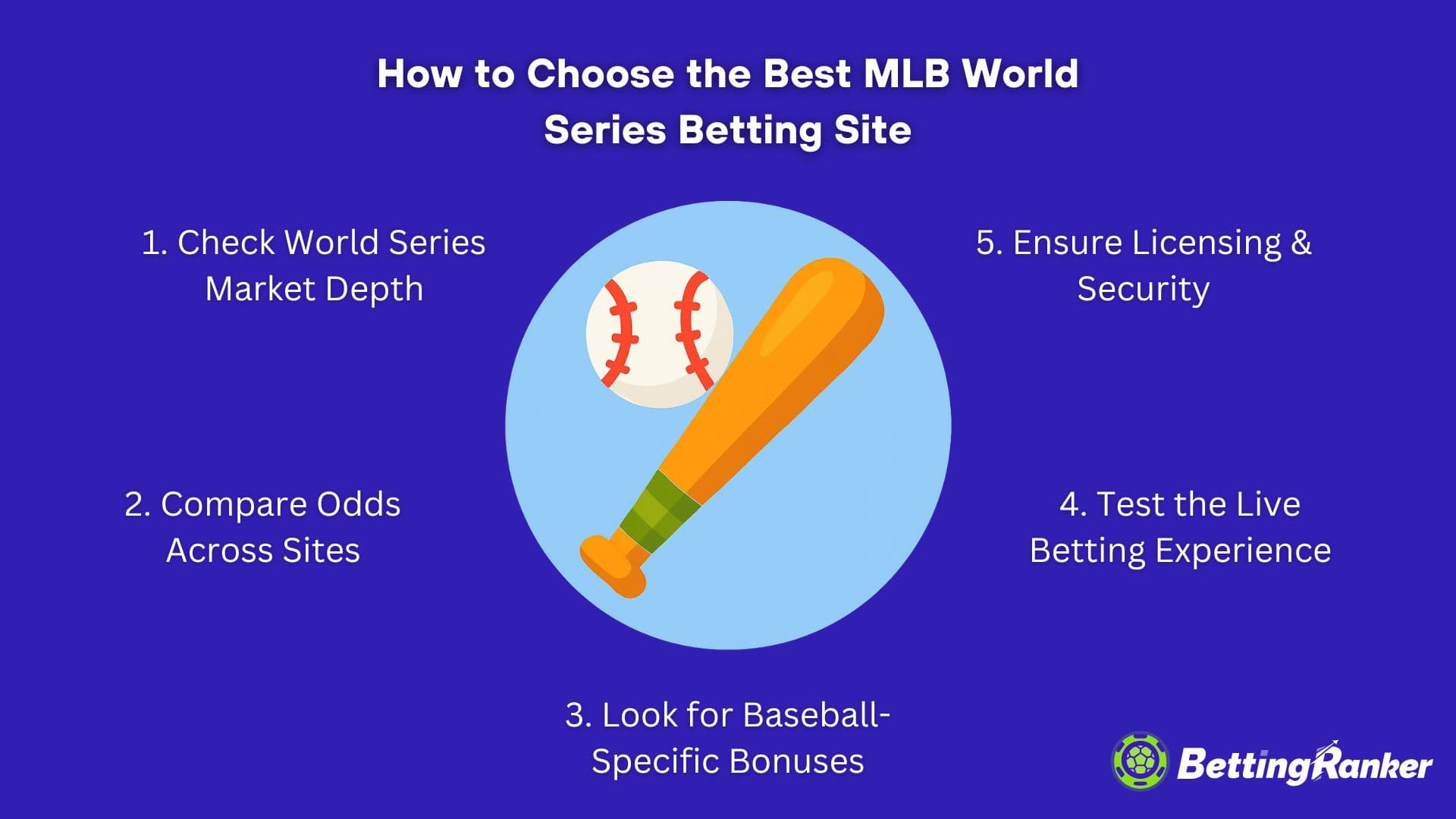 Con tantos sitios de apuestas deportivas en línea disponibles, elegir el adecuado para apostar en la Serie Mundial de la MLB puede resultar abrumador. Aquí tienes una lista de verificación simple para ayudarte a tomar la mejor decisión, basada en las características que más importan durante la postemporada: